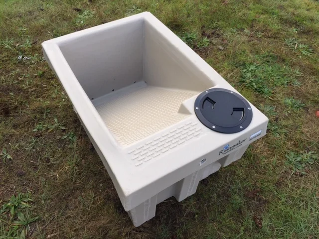 This versatile drinker is smaller version of our popular Drinker-110. It has a 40 gallon capacity and includes an integrated float-valve system that is securely located under the escape ramp to protect it from light freezes and curious animals. Includes 8" inspection hatch.