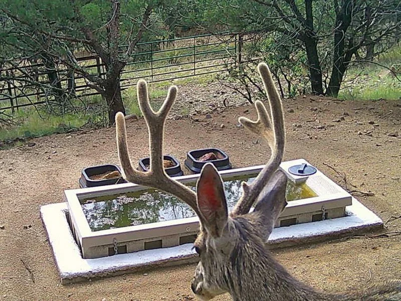 This Drinker-8 incorporates the same quality, durable features used in our larger Drinker-110 and Drinker-40. Its smaller footprint makes it cost-effective and simple to install. Perfect for connecting to a simple gravity feed storage tank or a plumbed water line. Suitable for deer and all small animals. It has a 8-gallon capacity and includes an integrated float-valve system that is securely located under the escape ramp to protect it from light freezes and curious animals.